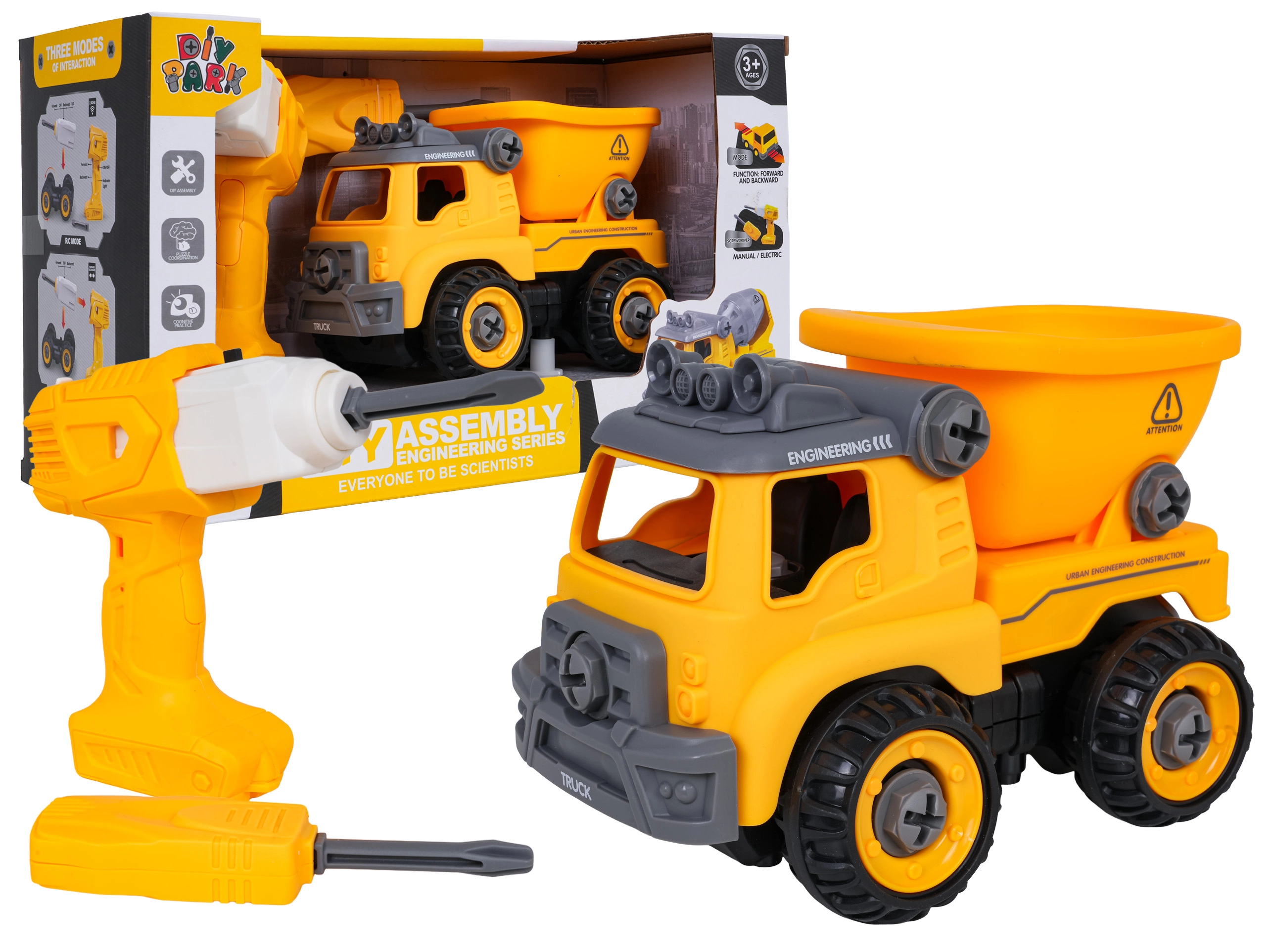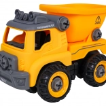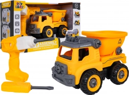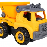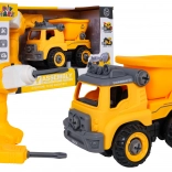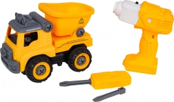 Camion-benne de chantier démontable et amusant pour les enfants dès 3 ans, avec perceuse à piles et tournevis manuel. Les enfants peuvent facilement démonter et remonter le véhicule, entraînant ainsi leur motricité fine, leur raisonnement logique et leur créativité. Après insertion du panneau de commande, la voiture se déplace seule en avant et en arrière, avec une benne basculante et un toit ouvrant.