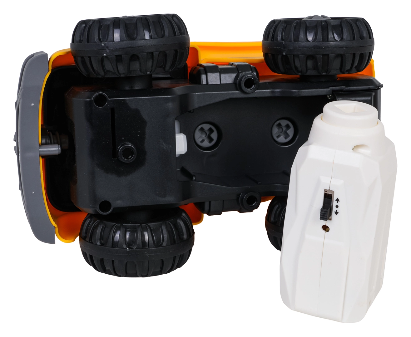 Un panneau de commande spécial, inséré dans le véhicule, permet à la benne de se déplacer automatiquement en avant ou en arrière. Des éléments réalistes comme la benne basculante et le toit ouvrant encouragent l’imitation des vraies machines de chantier et stimulent l’imagination des enfants.