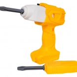 Grâce à la perceuse et au tournevis fournis, les enfants peuvent séparer le véhicule en pièces et le remonter. Une excellente façon d’entraîner la motricité fine et l’adresse.