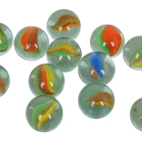Le coffret comprend 12 billes en verre aux motifs colorés – idéal pour les courses, les défis chronométrés et les expériences de gravité.
