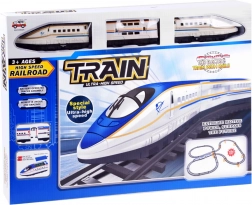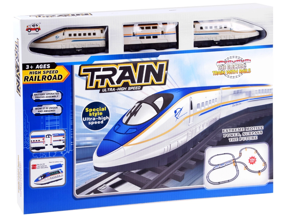 Amusant chemin de fer électrique avec train de voyageurs moderne et ponts surélevés offrant aux enfants des heures de jeu créatif. Le train se compose d’une locomotive et de deux wagons, les rails sont en plastique résistant et permettent d’assembler une voie jusqu’à 6,26 m. Grâce au système de clipsage facile, les rails sont solides et sûrs, le train est alimenté par 2× piles AA (non incluses) et se contrôle avec un simple interrupteur ON/OFF. Inclut des viaducs, virages et pentes pour une conduite dynamique sans déraillement.