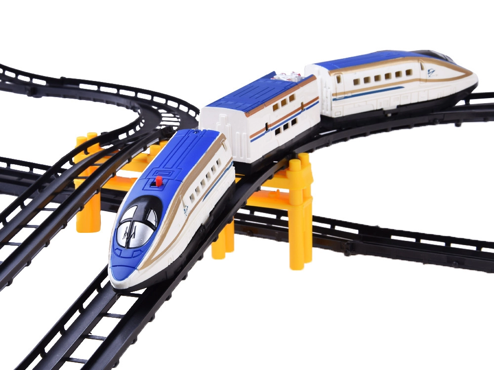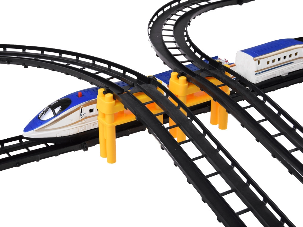 Ce circuit ferroviaire en plastique offre une conduite réaliste d’un train à grande vitesse moderne sur des ponts surélevés et des sections courbes. Grâce à la conception soignée des rails, le train tient la trajectoire et franchit en douceur les virages et les pentes. Le montage est rapide, intuitif et accessible aux enfants – chaque pièce s’emboîte en toute sécurité.