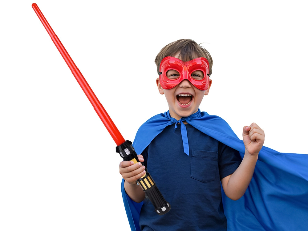 Le sabre lumineux extensible transforme chaque aventure en action épique. Grâce à sa lame lumineuse et à ses effets sonores, les enfants plongent instantanément dans un monde de fantaisie. Il suffit d’un geste vers l’avant pour que la lame se déploie en douceur à sa longueur complète.