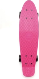 Pennyboard léger et maniable pour débutants et riders loisirs, offrant une longueur compacte de 60 cm, une capacité de charge de 90 kg et des axes métalliques robustes. La planche rose avec roues noires assure un look stylé et une conduite stable dès 8 ans.