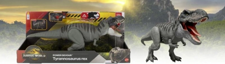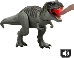 Vivez une action palpitante avec l’emblématique T‑Rex de JURASSIC WORLD. Ce grand modèle de 53 cm offre une morsure continue, des effets lumineux et des rugs effrayants. D’une simple pression sur le déclencheur situé sur la langue, le T‑Rex rugit ; en maintenant la pression, il lance une séquence de morsures sauvages avec sons et lumières. Grâce à la queue articulée, il varie ses attaques depuis différentes directions. Idéal comme cadeau pour les enfants dès 4 ans et excellent ajout à votre collection numérique dans l’application Jurassic World Play.