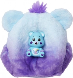 Chaque coffret comprend 10 surprises, dont une jupe, un serre-tête, des boucles d’oreilles, des chaussures ou des bottes, un peigne-éponge et un petit compagnon en peluche. Avec de l’eau, révélez un effet coloré sur le visage de la poupée qui démultiplie l’amusement. Chaque poupée est vendue séparément et le choix du personnage Bisounours peut varier.