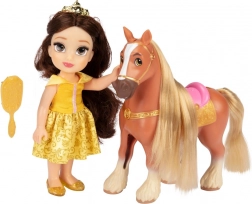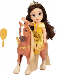 Ce set enchanteur transporte les enfants dans l’univers des contes DISNEY. RAIPONCE en robe violette ou BELLE en robe jaune est prête pour une promenade avec son cheval. Grâce à la brosse fournie, il est possible de coiffer et styliser les longs cheveux de la poupée ainsi que la crinière du cheval.
