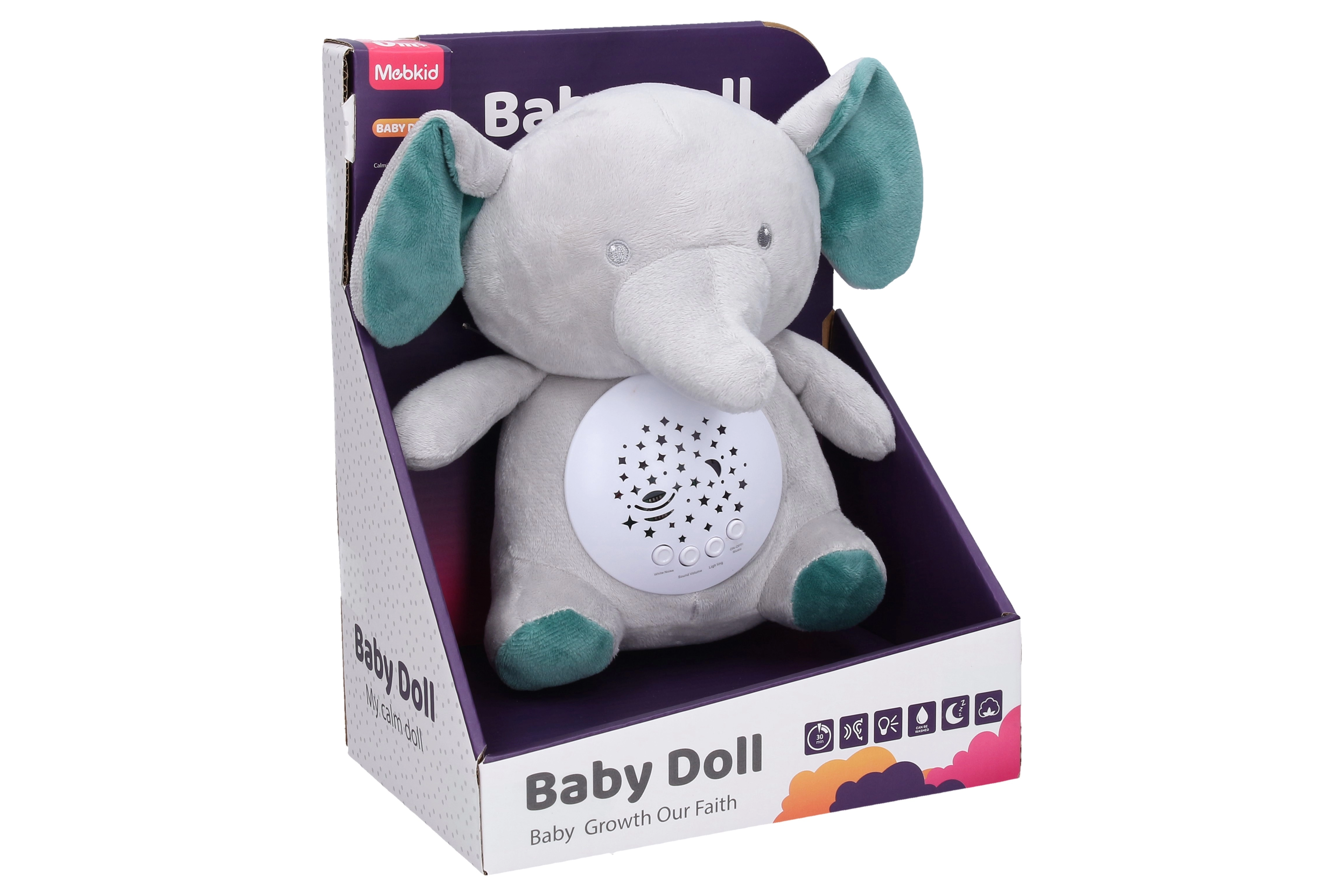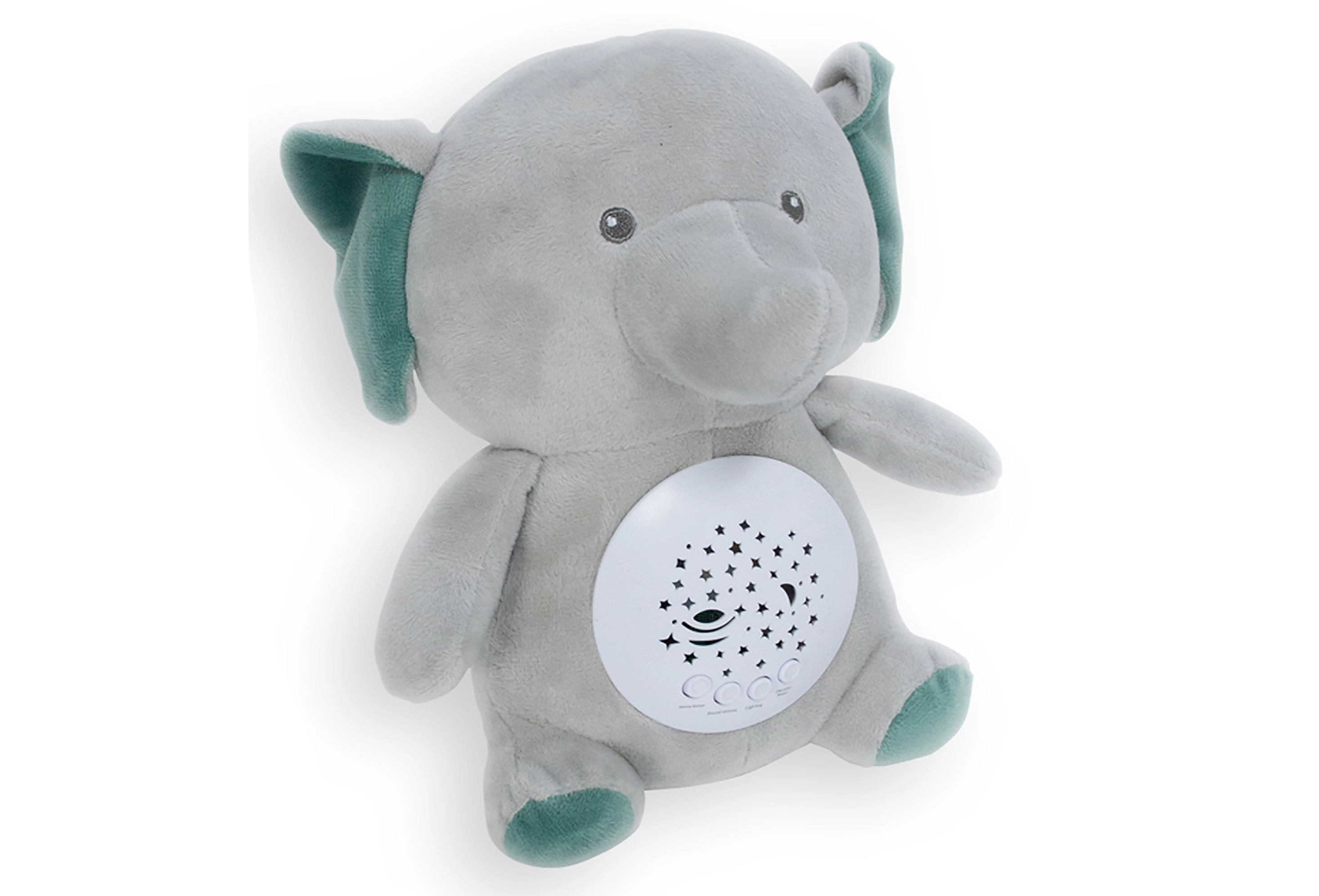 Ce doudou tout doux en forme d’éléphant est le compagnon idéal pour le rituel du soir. La lumière intégrée avec 7 couleurs peut changer automatiquement en fondu, tandis que le choix parmi 10 mélodies et 4 variantes de bruit blanc crée une atmosphère propice à un sommeil calme.