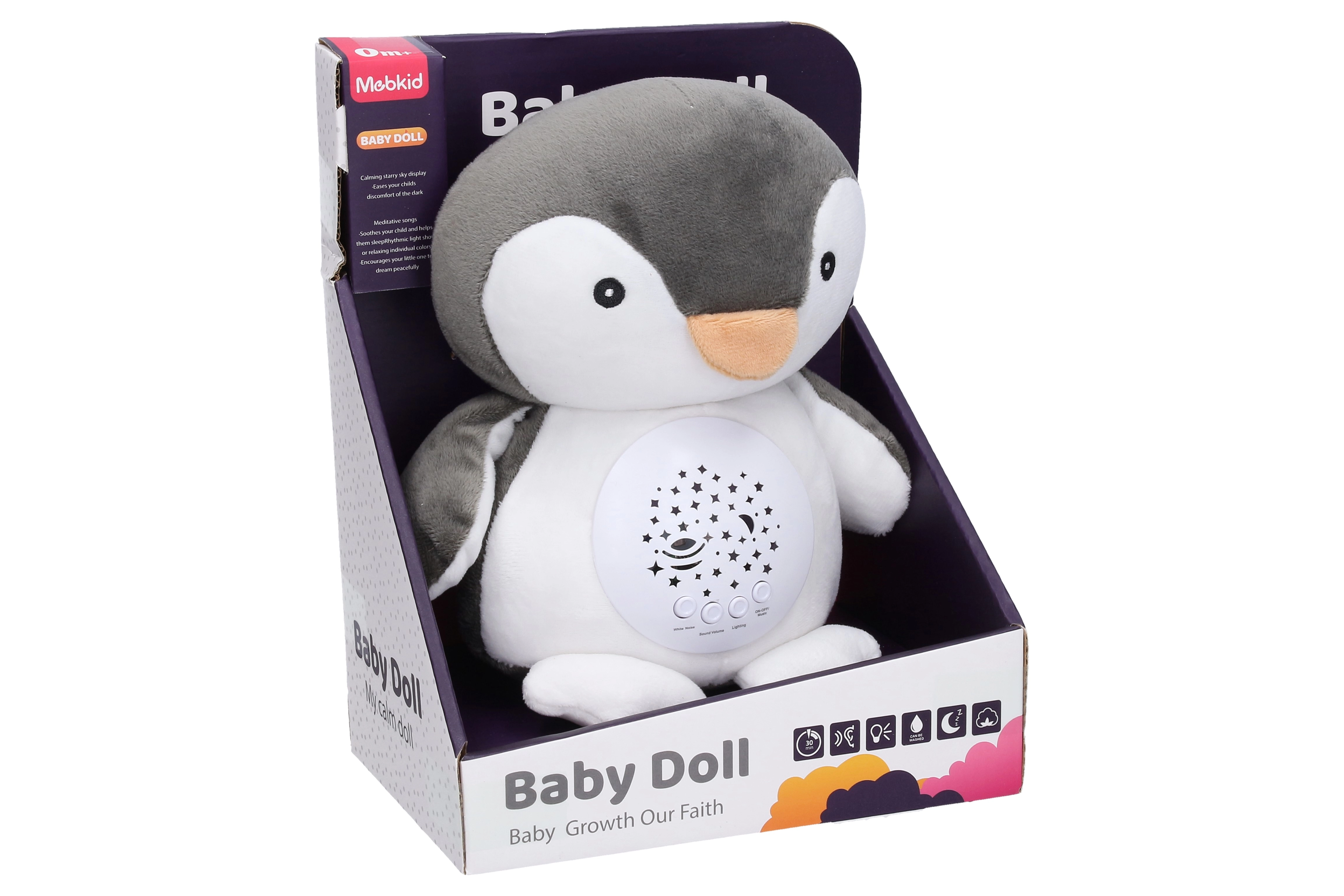 Ce pingouin tout doux de 26 cm est un compagnon idéal pour le coucher et les moments de détente. Grâce à sa lumière multicolore et au choix de mélodies, il crée une atmosphère agréable et aide les enfants à se relaxer avant de dormir.