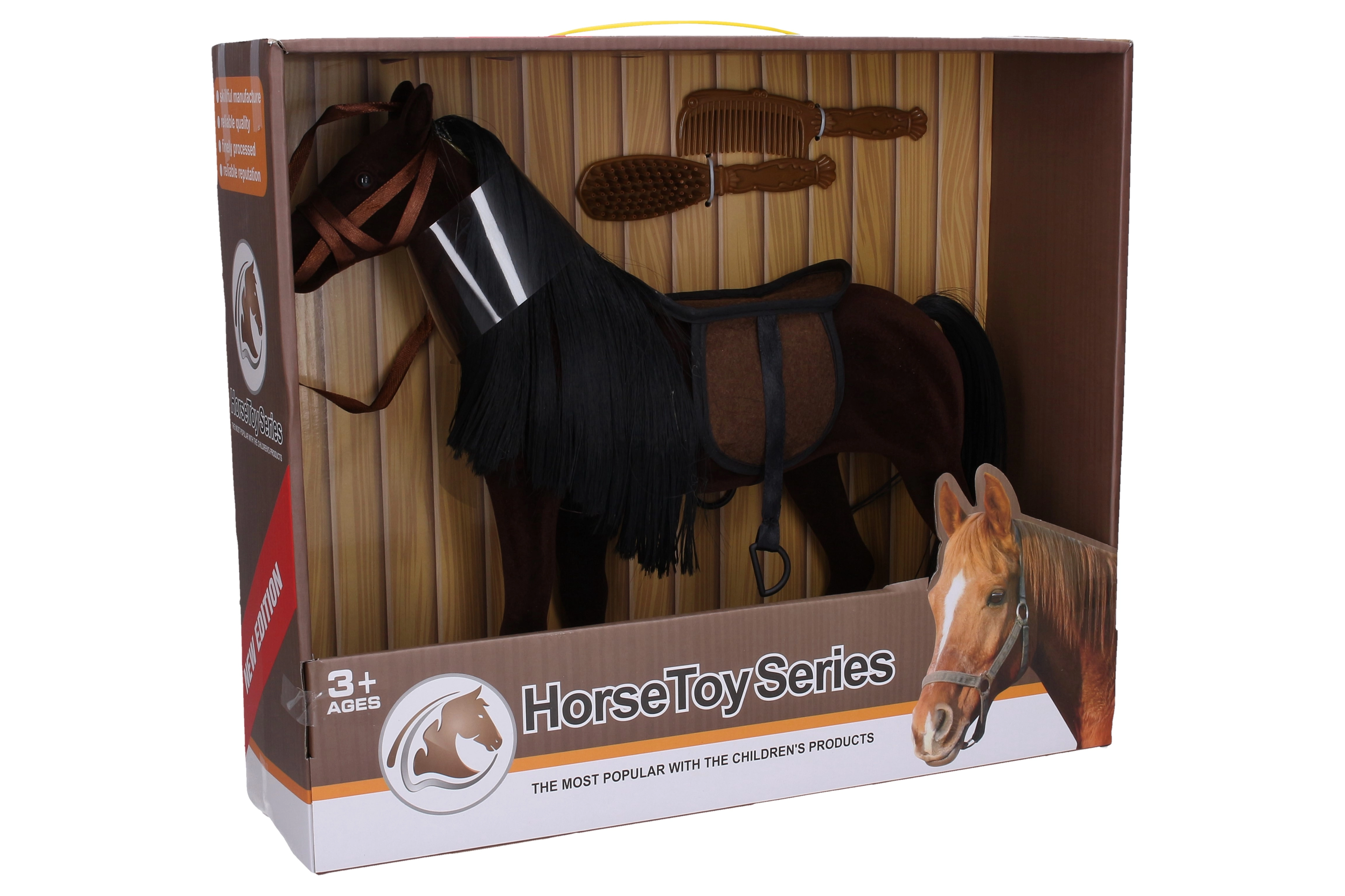 - Contenu de l’emballage : cheval en peluche, selle, 2 brosses