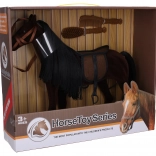 Adorable cheval en peluche de couleur foncée, taille 35 cm, qui ravira tous les petits amoureux des chevaux. L’ensemble comprend une selle et deux brosses pour un toilettage facile. Un jouet idéal pour développer l’imagination et la motricité fine. Matière douce, détails réalistes et accessoires pratiques pour des heures de jeu à la maison comme en voyage.