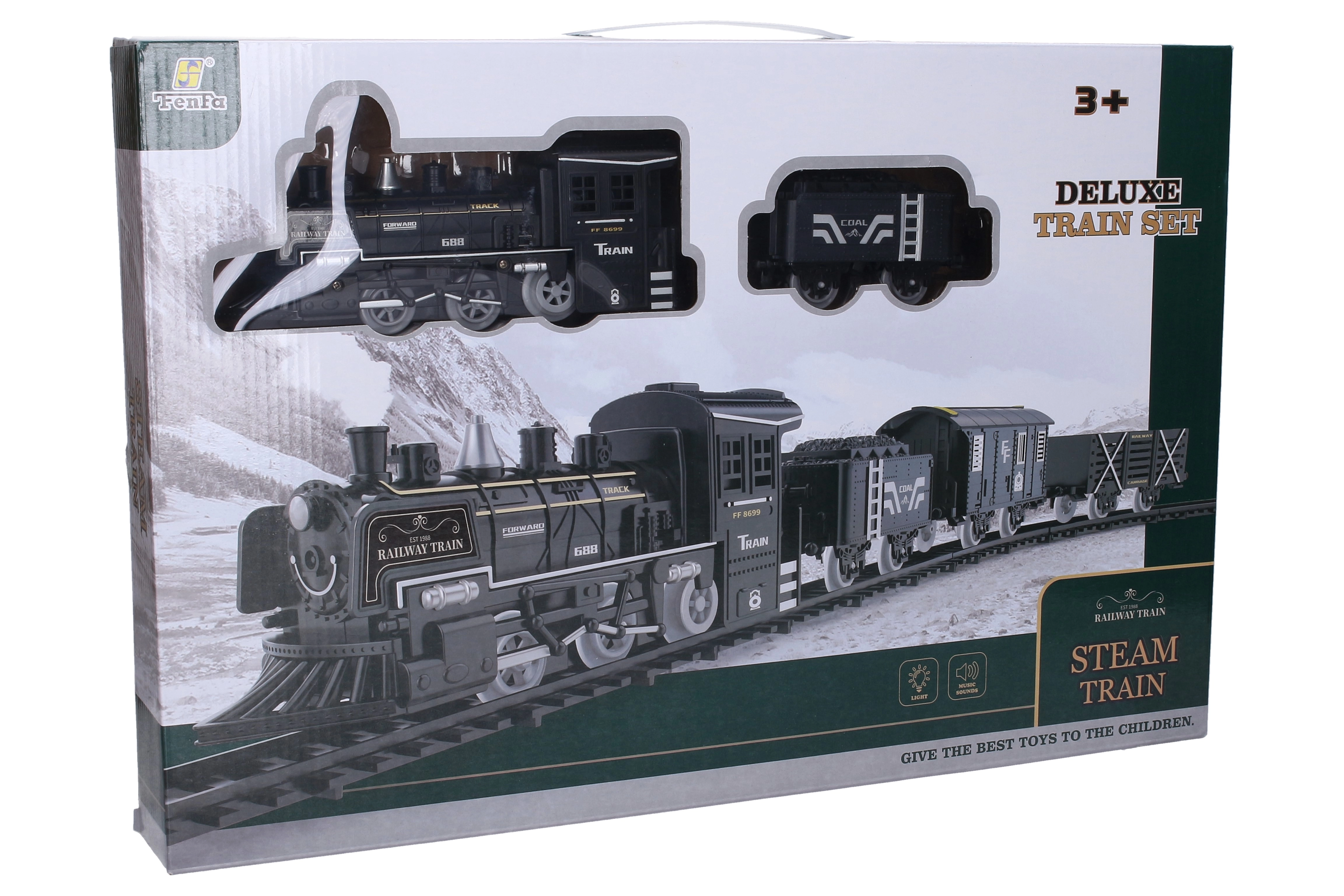 Ce train finement détaillé ravira les petits et les grands amateurs de chemins de fer. Grâce aux effets de fumée réalistes et aux sons de locomotive, la conduite est authentique et ludique. Le réseau de rails se règle facilement en trois formats, pour adapter le tracé à l’espace de la chambre d’enfant.