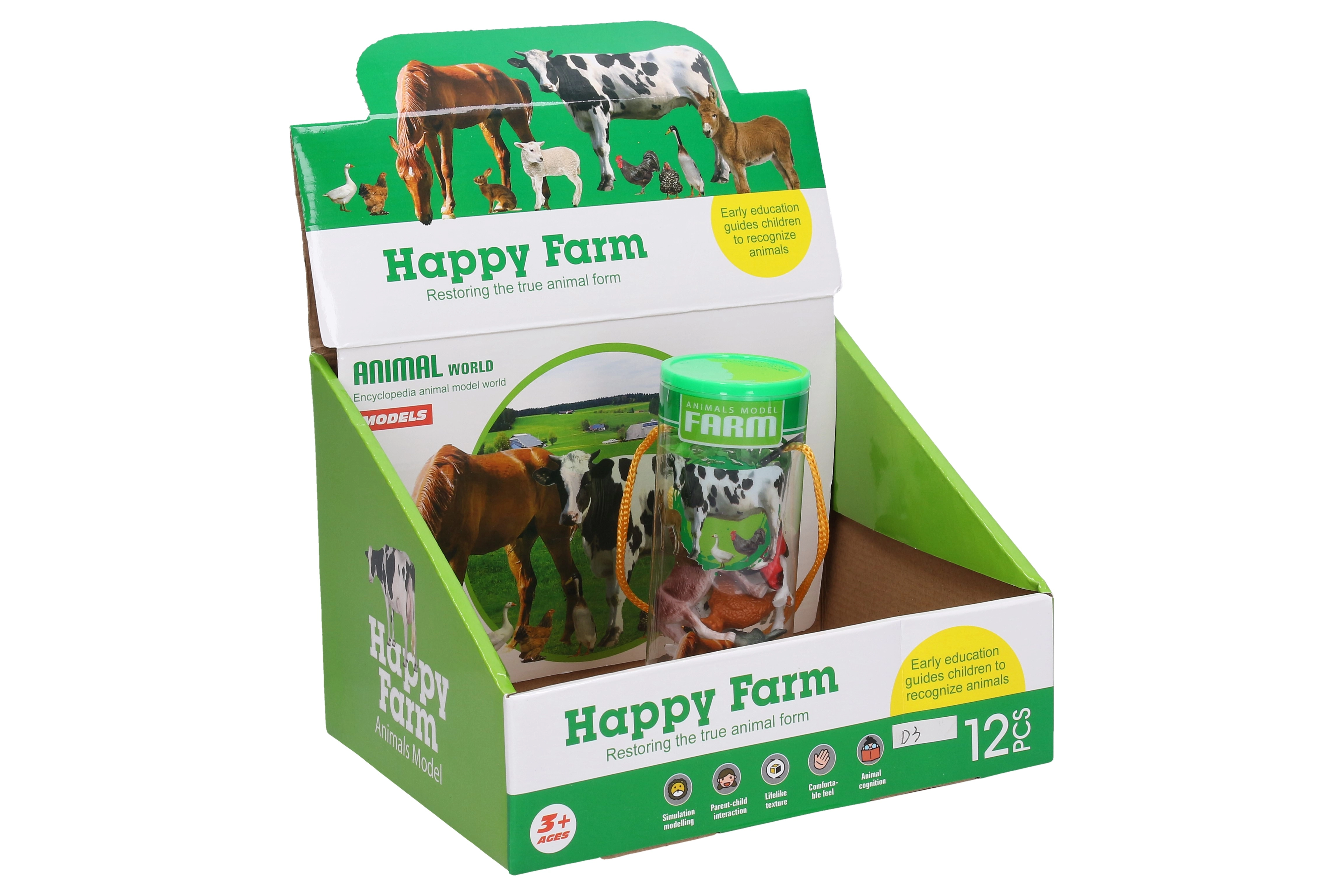 Le set est parfait pour le jeu en solo, pour compléter des fermes miniatures et dioramas, ou comme petit cadeau. Les figurines sont rangées de manière claire dans un display box, ce qui facilite leur stockage et leur exposition.
