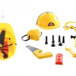 Ce set d’outils pour enfants avec casque offre une expérience authentique des travaux de bricolage. Grâce au casque léger, aux lunettes de protection et au masque, les enfants peuvent jouer en toute sécurité et imiter le monde des adultes. Le set comprend aussi des outils appréciés comme une scie, un marteau, un tournevis et une clé, complétés par des vis et une imitation de bois pour s’entraîner à visser.