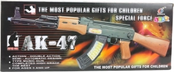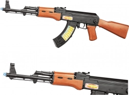 Réplique réaliste de fusil automatique AK-47 pour enfants offrant un jeu d’action avec effets lumineux et sonores. En finition noir–brun avec imitation bois, il ressemble à un vrai. Idéal pour les jeux de rôle, il stimule l’imagination et offre beaucoup de divertissement palpitant à la maison comme en extérieur.