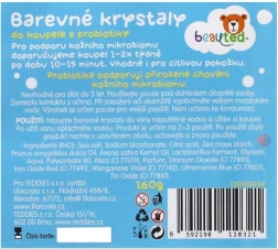 Les cristaux de bain colorés transforment l’hygiène quotidienne en un rituel joyeux. Une fois versés dans l’eau tiède, ils créent un effet pétillant, colorent agréablement l’eau et laissent un parfum délicat. Grâce à l’association de probiotiques, de minéraux de sel marin, d’extrait d’avoine et d’huile d’amande, ils aident à apaiser et nourrir la peau tout en soutenant ses défenses naturelles.