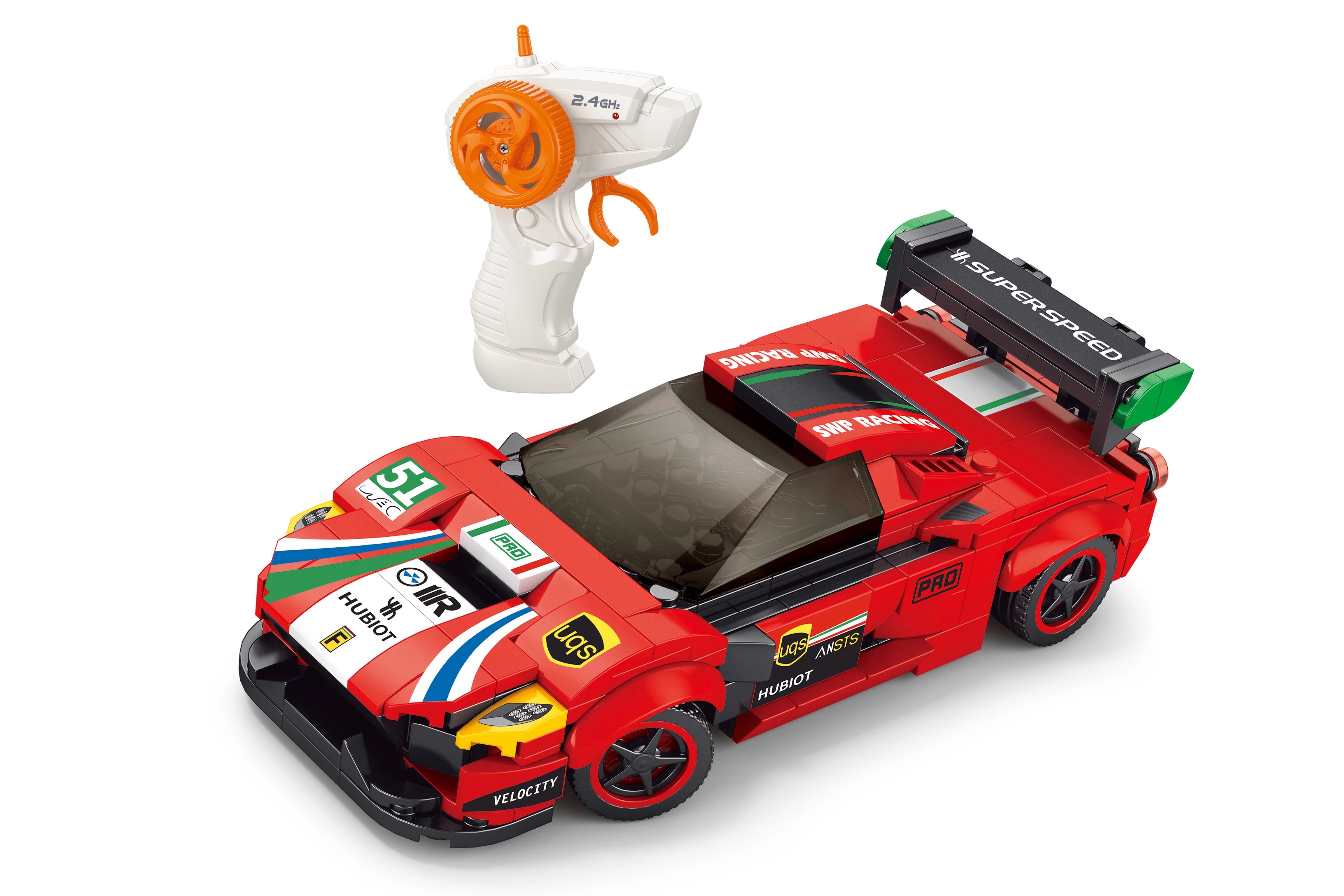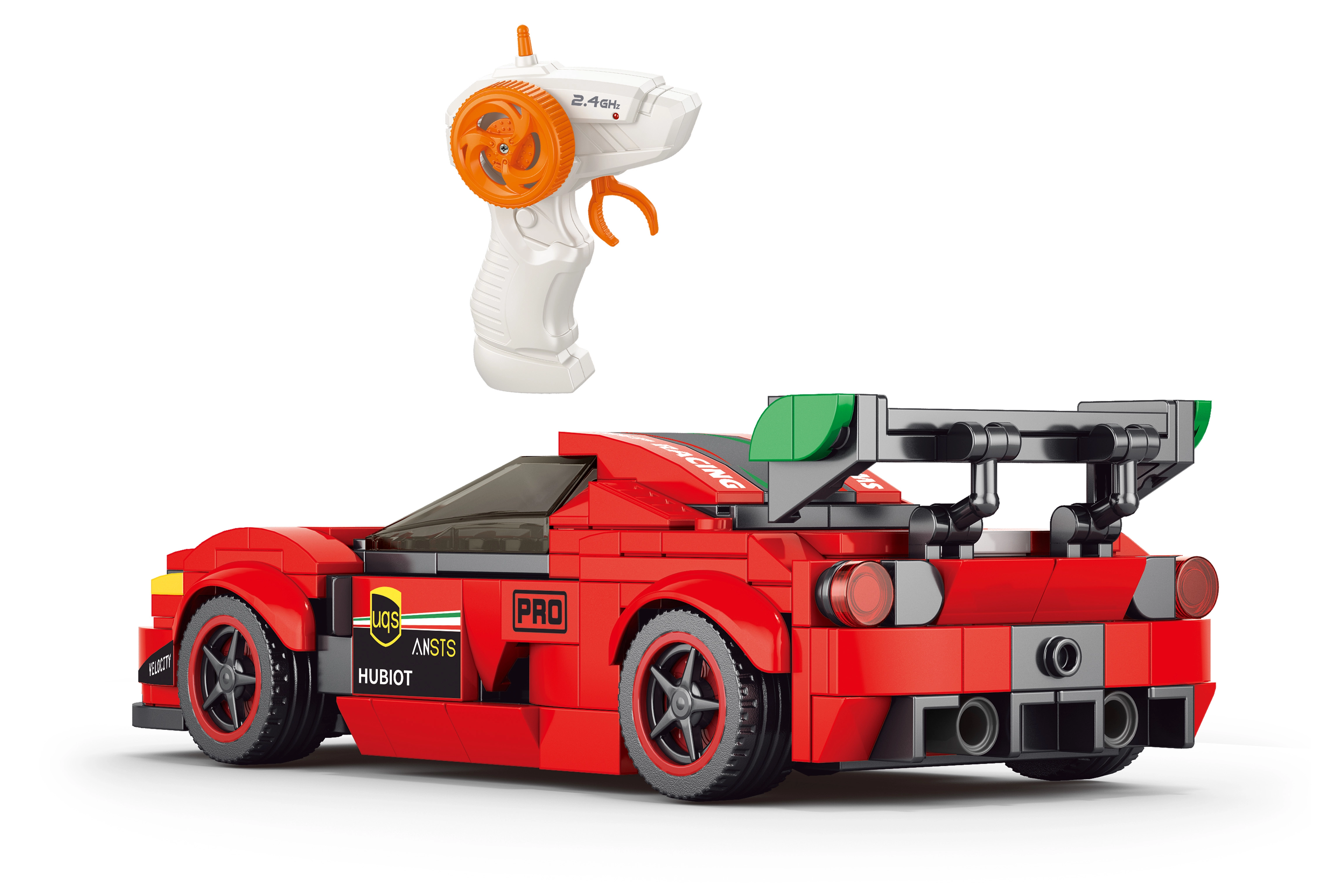 Ce kit créatif ravira les petits et les grands passionnés de technologie. Assemblez une voiture de course rouge détaillée d’environ 17 cm de long et pilotez‑la avec une confortable télécommande pistolet. La fréquence 2,4 GHz offre un signal stable et une commande fluide, sans perturbations.