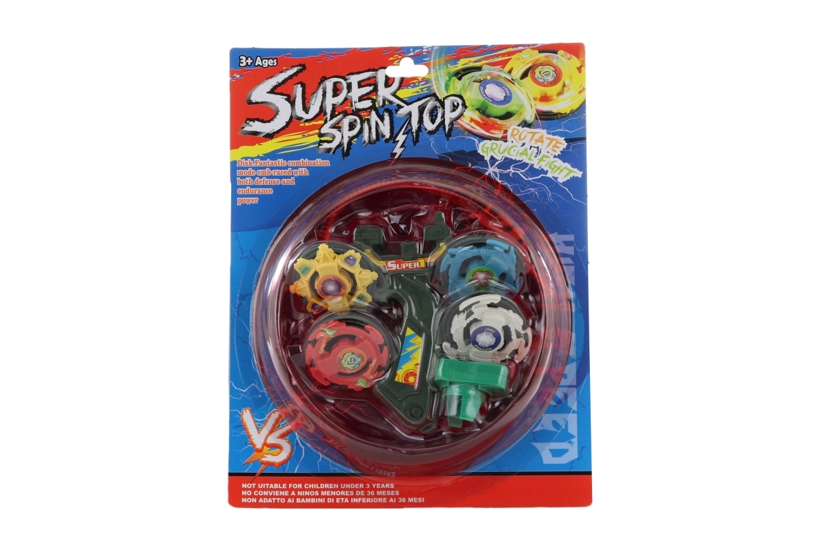 - Pack complet : arène, 4 toupies et dispositif de lancement.