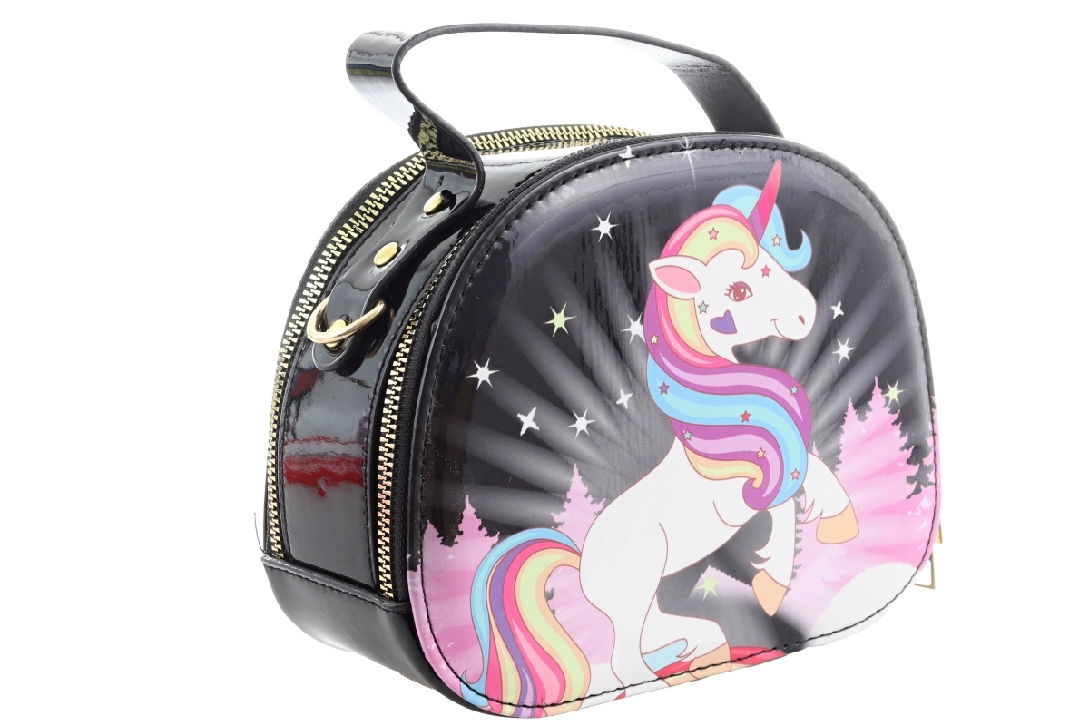 Ce sac à main stylé au motif de licorne féerique est un excellent accessoire pour enfants et ados. La surface brillante et facile à nettoyer et la poignée rigide garantissent un usage confortable et durable. Grâce à sa unique poche principale zippée, tous vos petits objets sont rangés en toute sécurité.