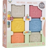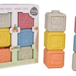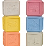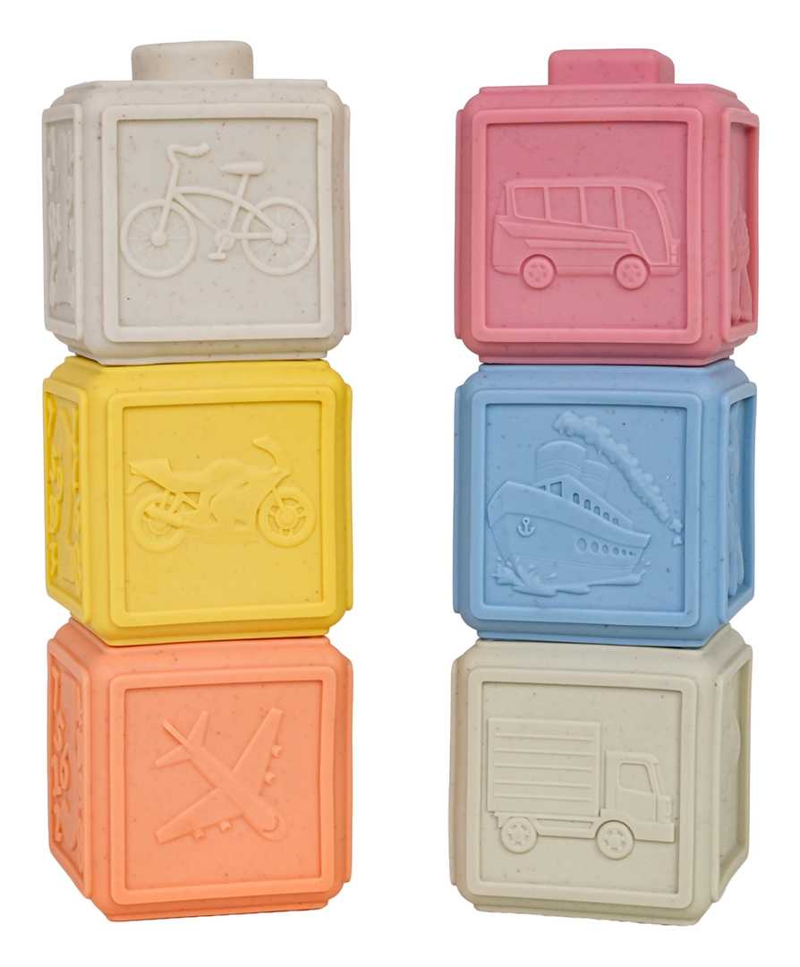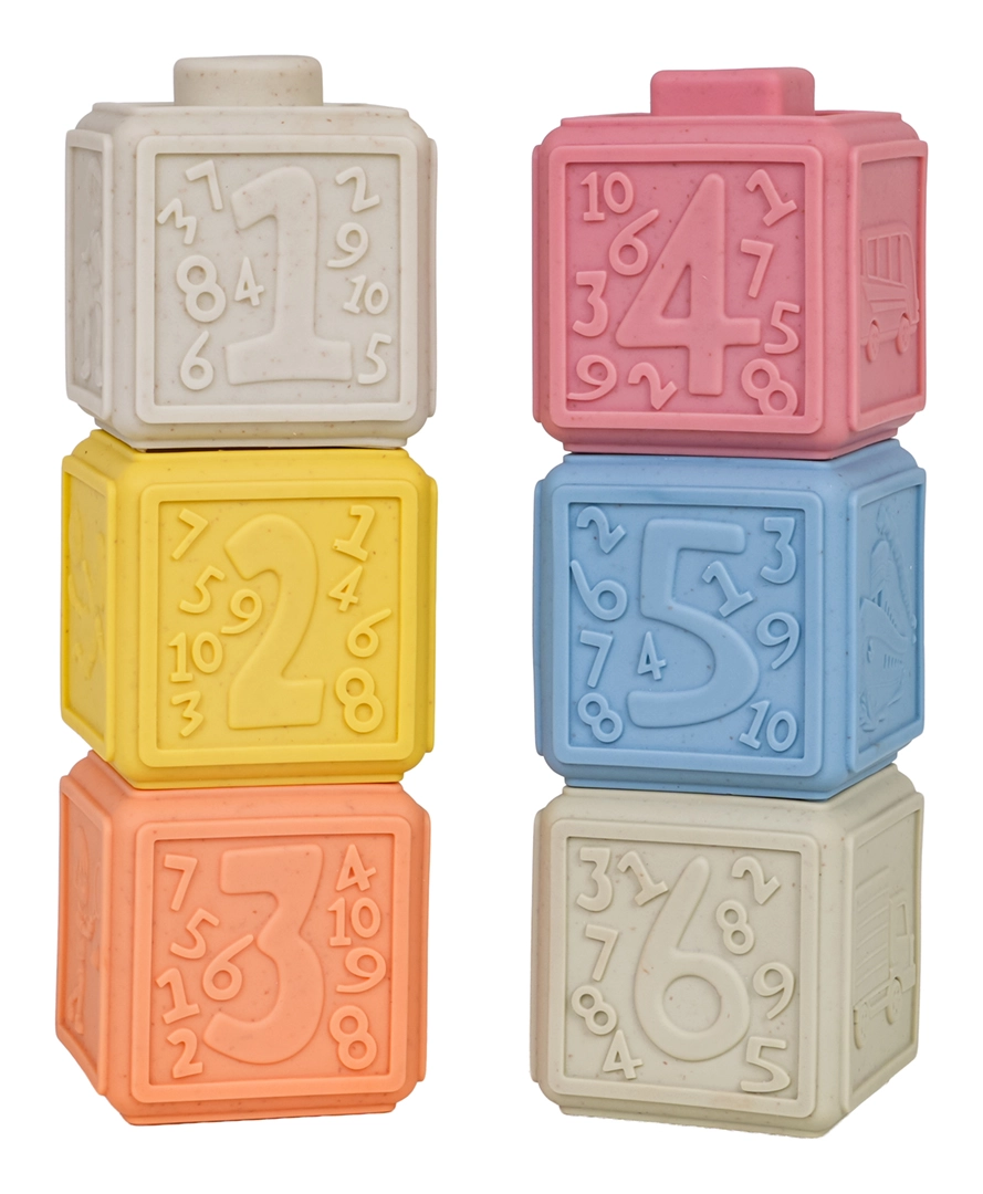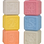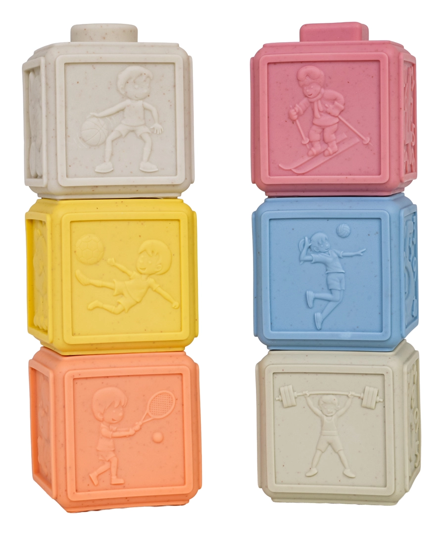 Un set écologique de 6 cubes souples aux couleurs pastel offrant d’innombrables possibilités de jeu et d’apprentissage. Chaque cube possède une texture de surface et des motifs différents, favorisant la motricité fine, la coordination œil–main et le développement des sens. Grâce à leur matériau sûr et souple, ils sont idéals pour les tout-petits et peuvent également servir de jouets de dentition pendant la poussée dentaire.