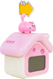 Ce réveil ludique en forme de petite maison rose et blanche avec un chat ravira les enfants dès 3 ans. Il propose un écran numérique clair, une douce veilleuse, une alarme avec fonction répétition et un indicateur de température. La batterie intégrée 3,7 V 1200 mAh se recharge via un connecteur USB‑C moderne, évitant ainsi le remplacement des piles.
