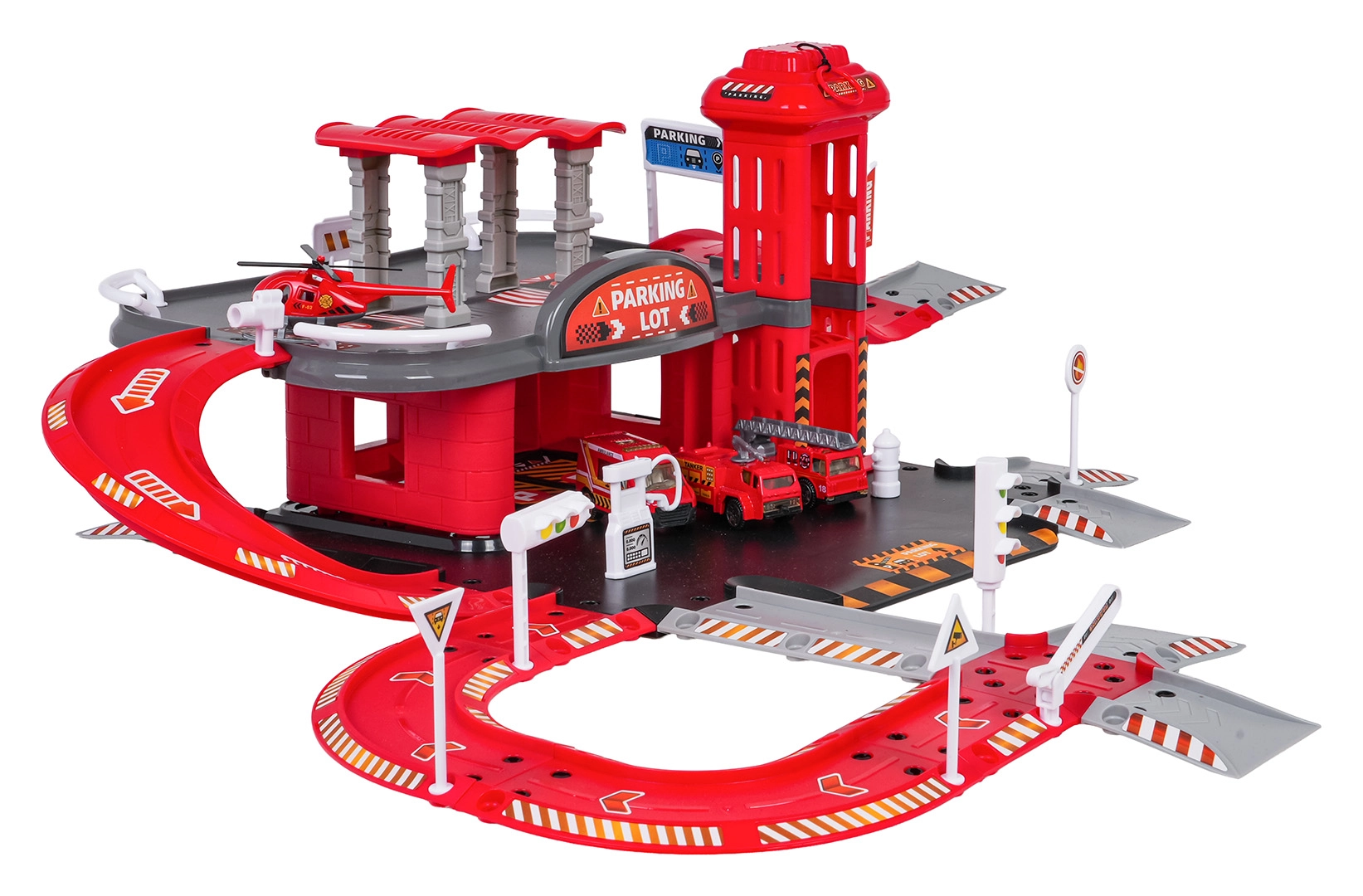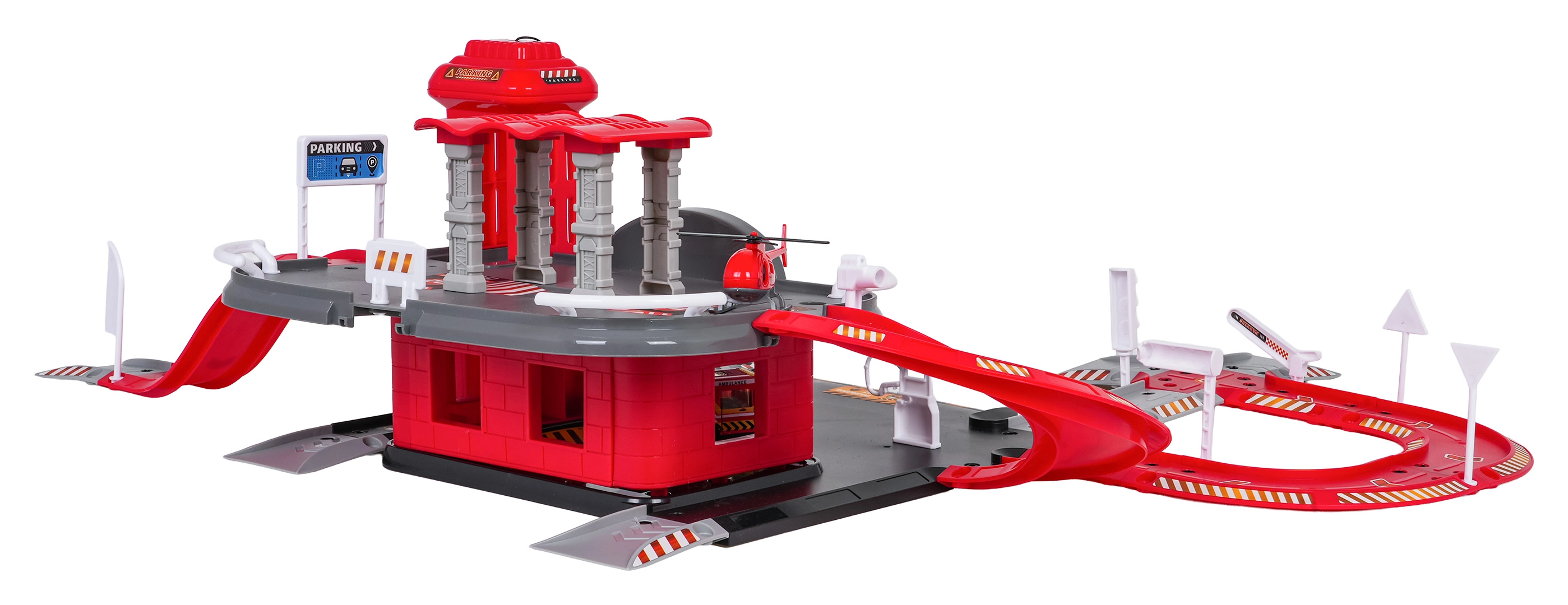 Ce set de station de pompiers soigneusement conçu allie amusement et développement des compétences. Les enfants peuvent faire le plein à la station, circuler sur la route, monter le véhicule à l’étage avec l’ascenseur manuel et se garer sur les places dédiées. Depuis l’étage supérieur, les véhicules redescendent par l’ascenseur ou filent le long de la rampe hélicoïdale.