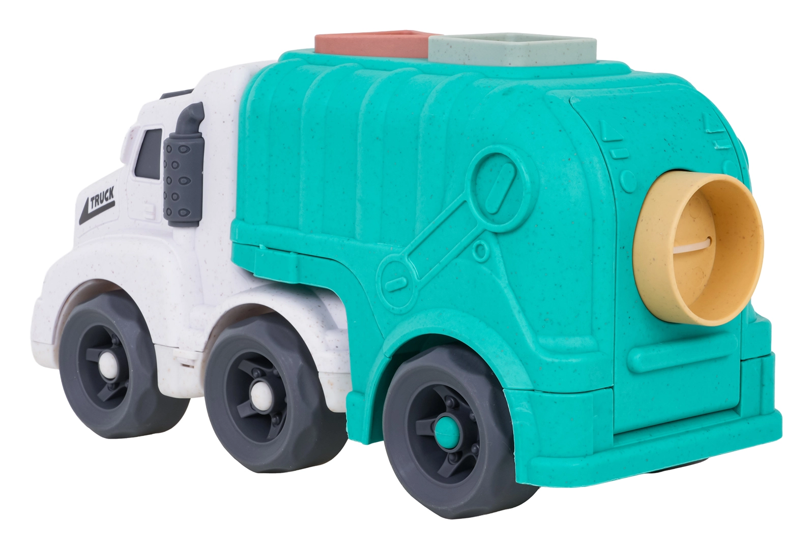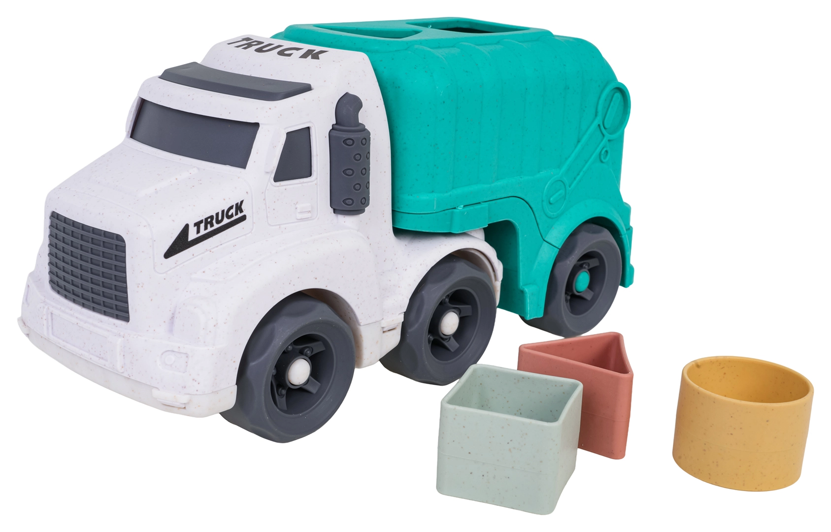 Découvrez un jouet amusant et durable pour les tout-petits : un camion-benne fabriqué en bioplastique de qualité. Grâce au trieur de formes sur le toit et sur la trappe arrière, les enfants exercent la reconnaissance des formes et des couleurs, tandis que les roues mobiles invitent à un jeu créatif et dynamique. La trappe arrière ouvrante permet un accès rapide aux blocs et facilite la répétition du jeu.