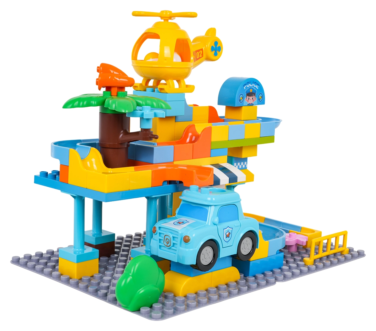 Cette grande boîte de construction permet aux enfants de bâtir leur propre station de police avec toboggan, rampes et aire d’atterrissage pour hélicoptère. Les briques faciles à assembler tiennent fermement ensemble et, grâce aux couleurs vives, stimulent naturellement l’imagination et la concentration des enfants.