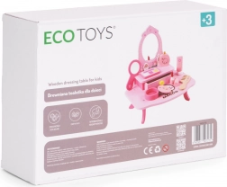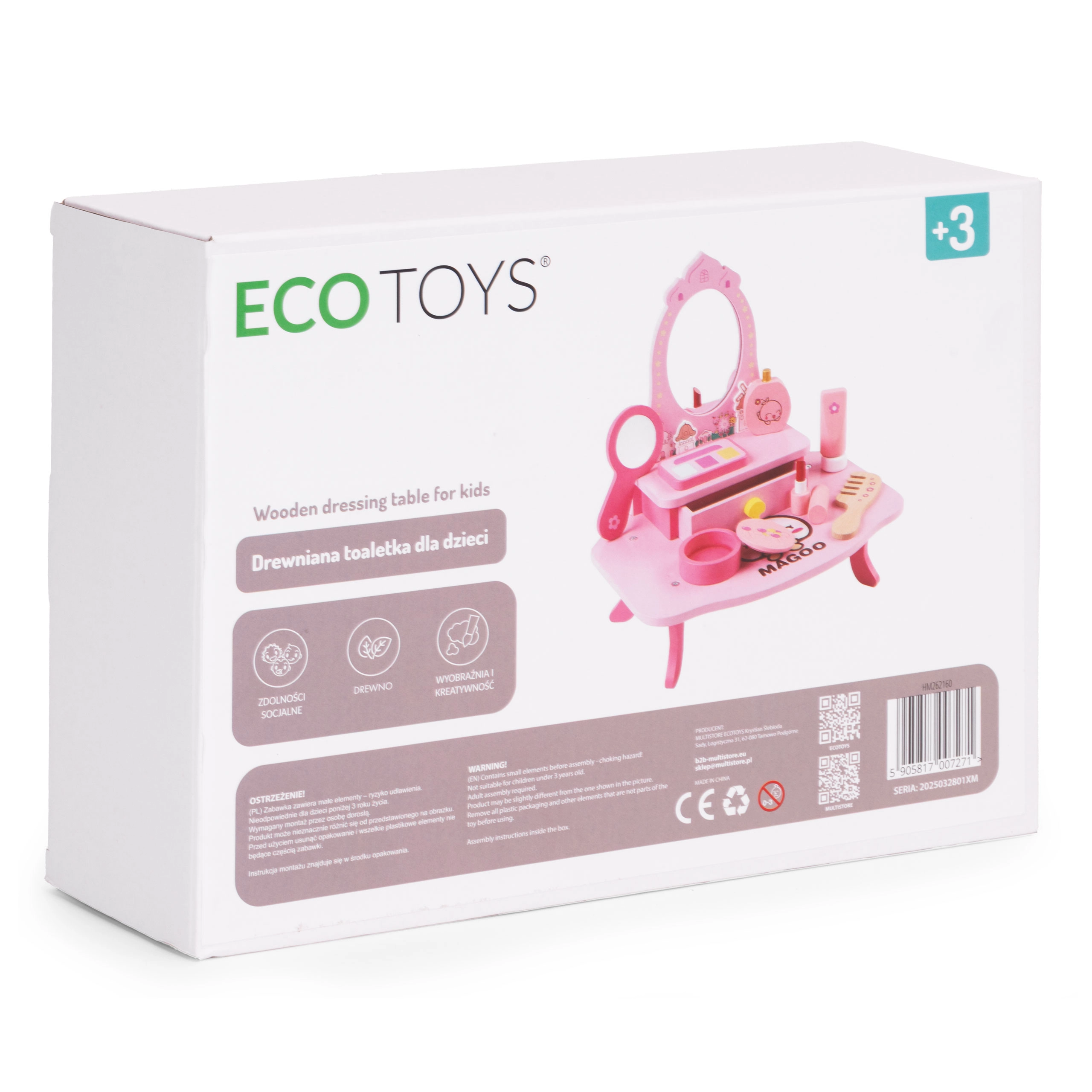 Offrez aux enfants leur propre coin créatif : la coiffeuse ECOTOYS, dans un délicat rose, s’intègre parfaitement dans la chambre d’enfant et invite au jeu d’imitation. Les enfants expérimentent en toute sécurité les rituels du quotidien, apprennent à maintenir l’ordre grâce au tiroir et développent à la fois leurs compétences manuelles et leur confiance en eux.