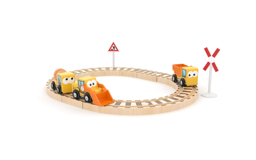 Découvrez un amusant set de jeu en bois avec circuit ferroviaire et engins de chantier, qui stimule l’imagination, la motricité fine et le jeu créatif. Fabriqué en bois durable et écologique, sans produits chimiques. Idéal pour les enfants dès 18 mois.