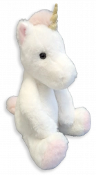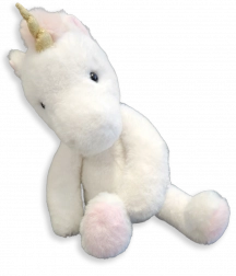 La corne dorée scintillante et les délicats détails roses confèrent à la peluche une touche féerique que les enfants adorent.