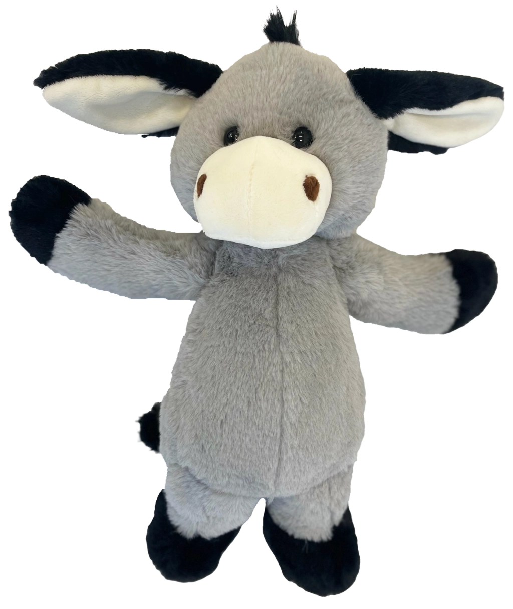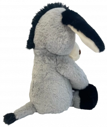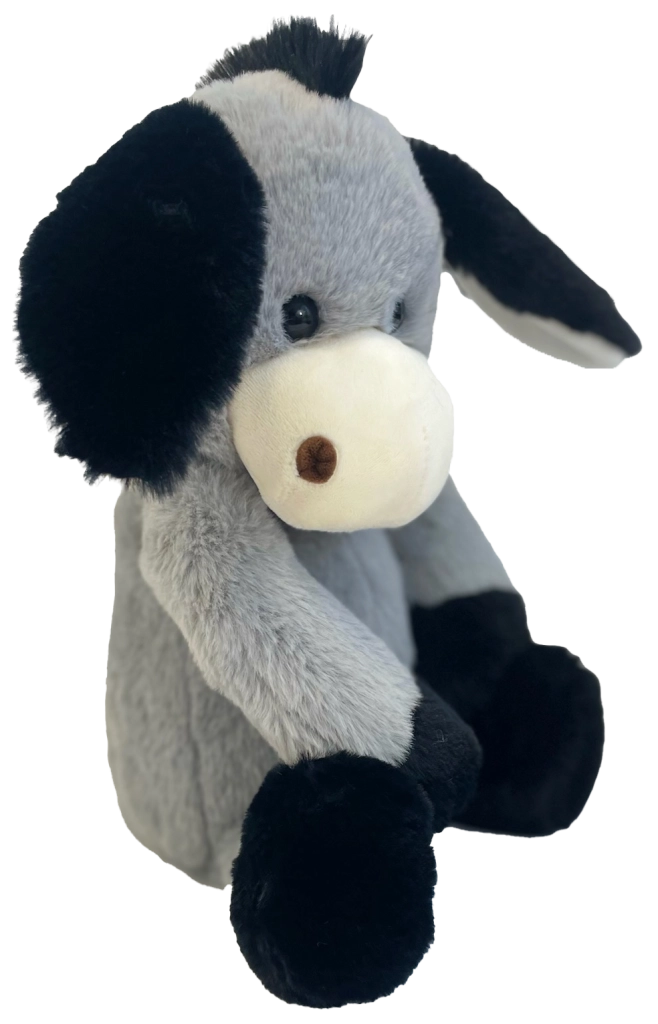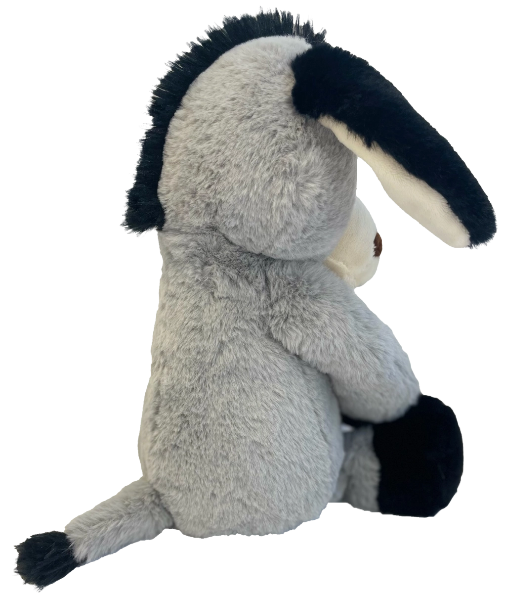 L’âne possède des yeux et narines brodés pour une sécurité maximale sans petites pièces, des oreilles et pattes souples faciles à attraper et des coutures résistantes pour une grande durabilité. Grâce à sa hauteur compacte de 40 cm, il tient parfaitement dans les bras et invite aux câlins.