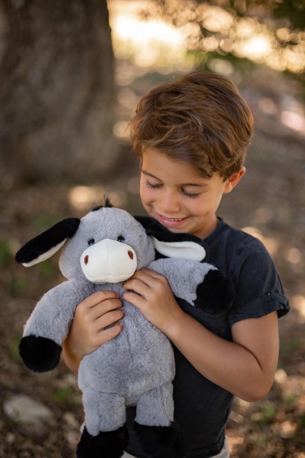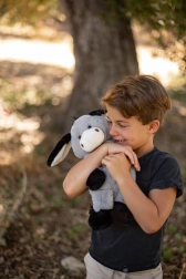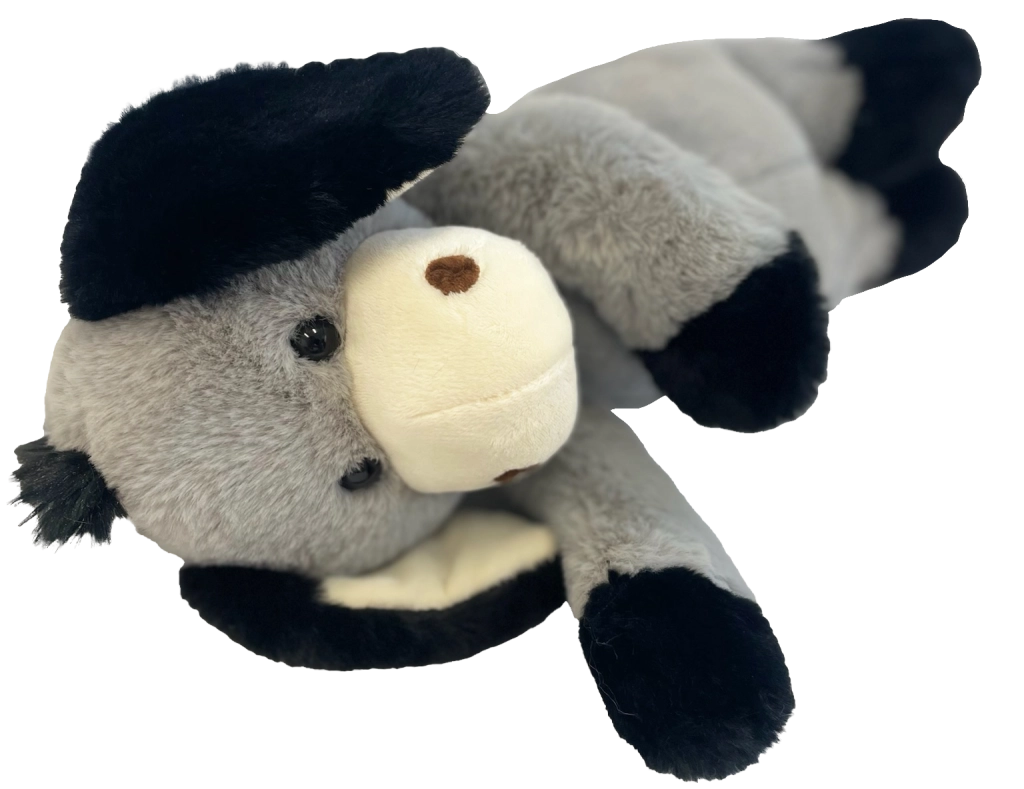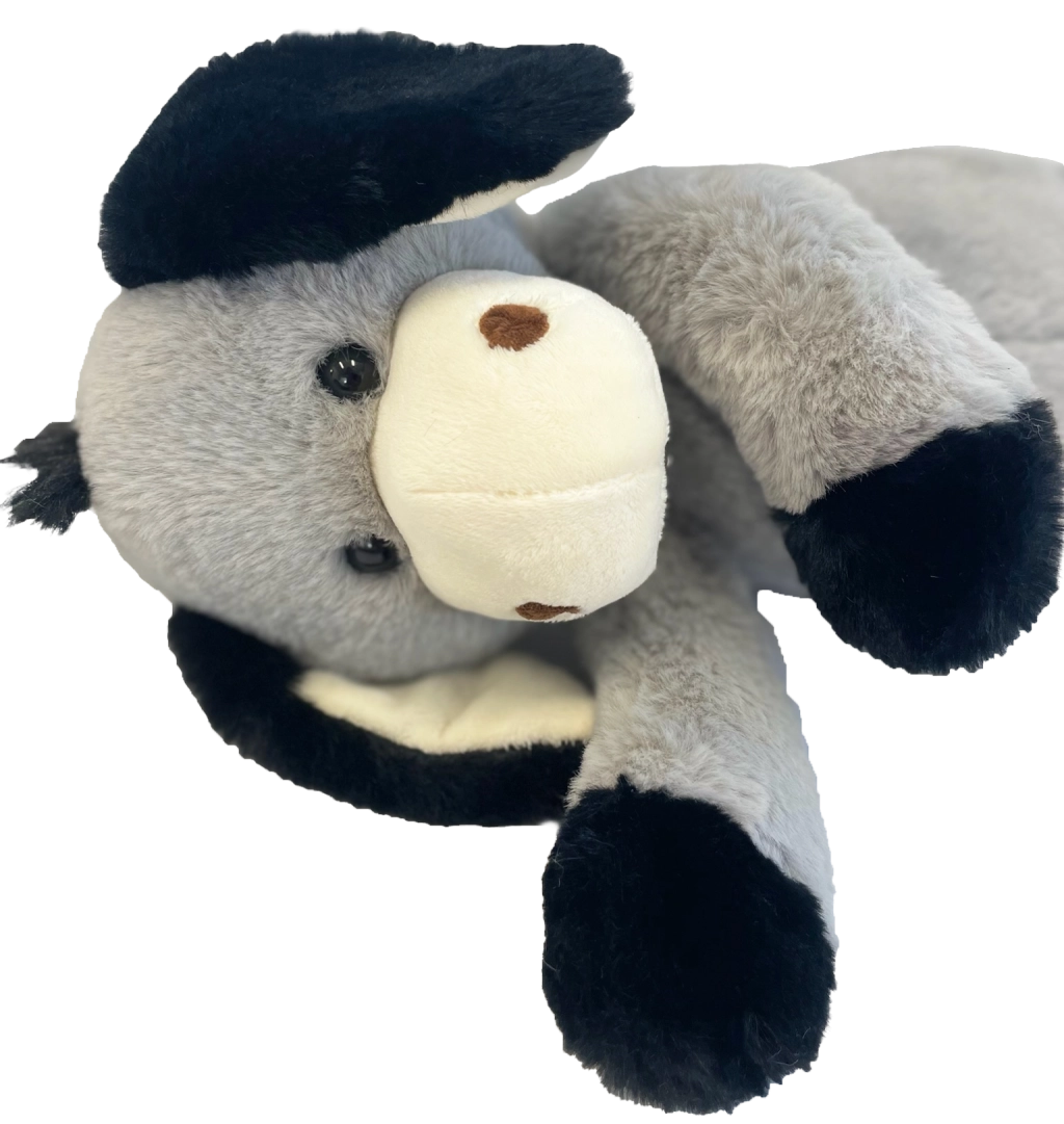 L’âne possède des yeux et narines brodés pour une sécurité maximale sans petites pièces, des oreilles et pattes souples faciles à attraper et des coutures résistantes pour une grande durabilité. Grâce à sa hauteur compacte de 40 cm, il tient parfaitement dans les bras et invite aux câlins.
