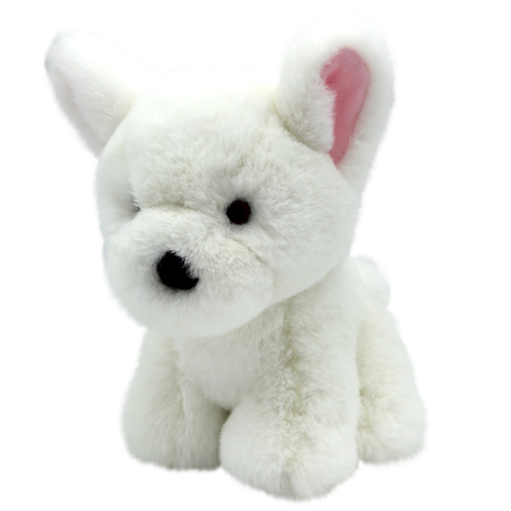 Adorable chien en peluche de couleur blanche, taille 27 cm, compagnon idéal pour les enfants. Fabriqué en matière douce et moelleuse qui invite aux câlins. Grâce à ses dimensions compactes, il est parfait pour les voyages, le lit d’enfant et comme adorable accessoire pour la chambre d’enfant.