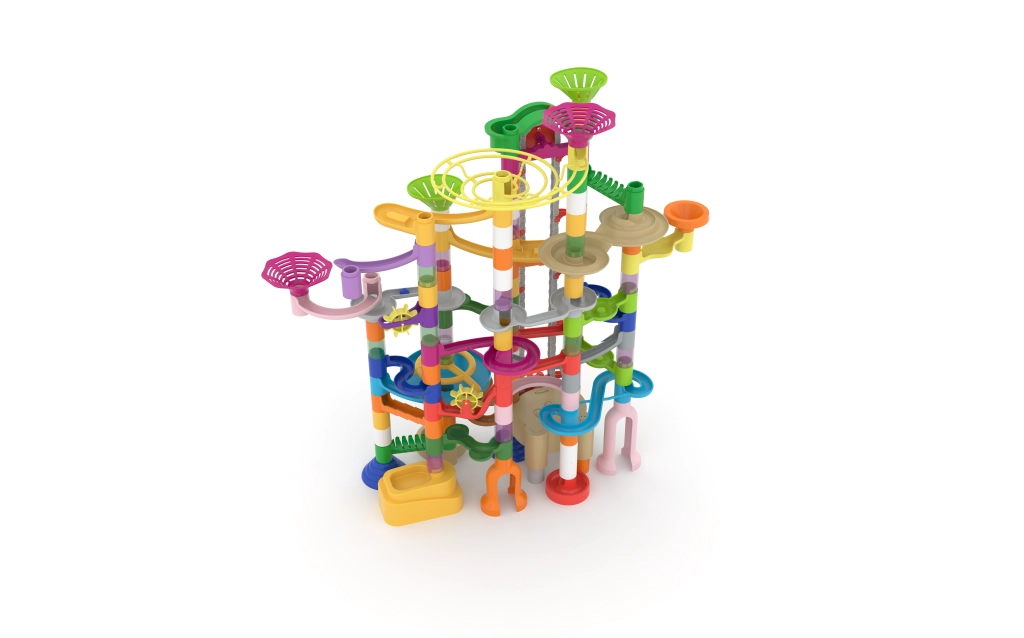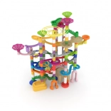 Ce grand circuit à billes propose une palette variée d’éléments pour construire de hautes tours, des descentes dynamiques et des tunnels ludiques. Grâce aux segments faciles à combiner, les enfants entraînent patience, créativité et pensée technique tout en observant les billes filer à toute vitesse sur la piste terminée.