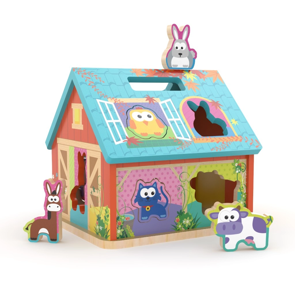 Découvrez la magie de la vie à la ferme avec ce charmant puzzle à encastrer en bois en forme de maisonnette. Ce jouet en bois naturel de qualité développe la motricité fine, la coordination œil–main et l’apprentissage des formes, des animaux et des couleurs. Les pièces ont des bords lisses, des peintures non toxiques et tiennent parfaitement dans les petites mains des enfants.