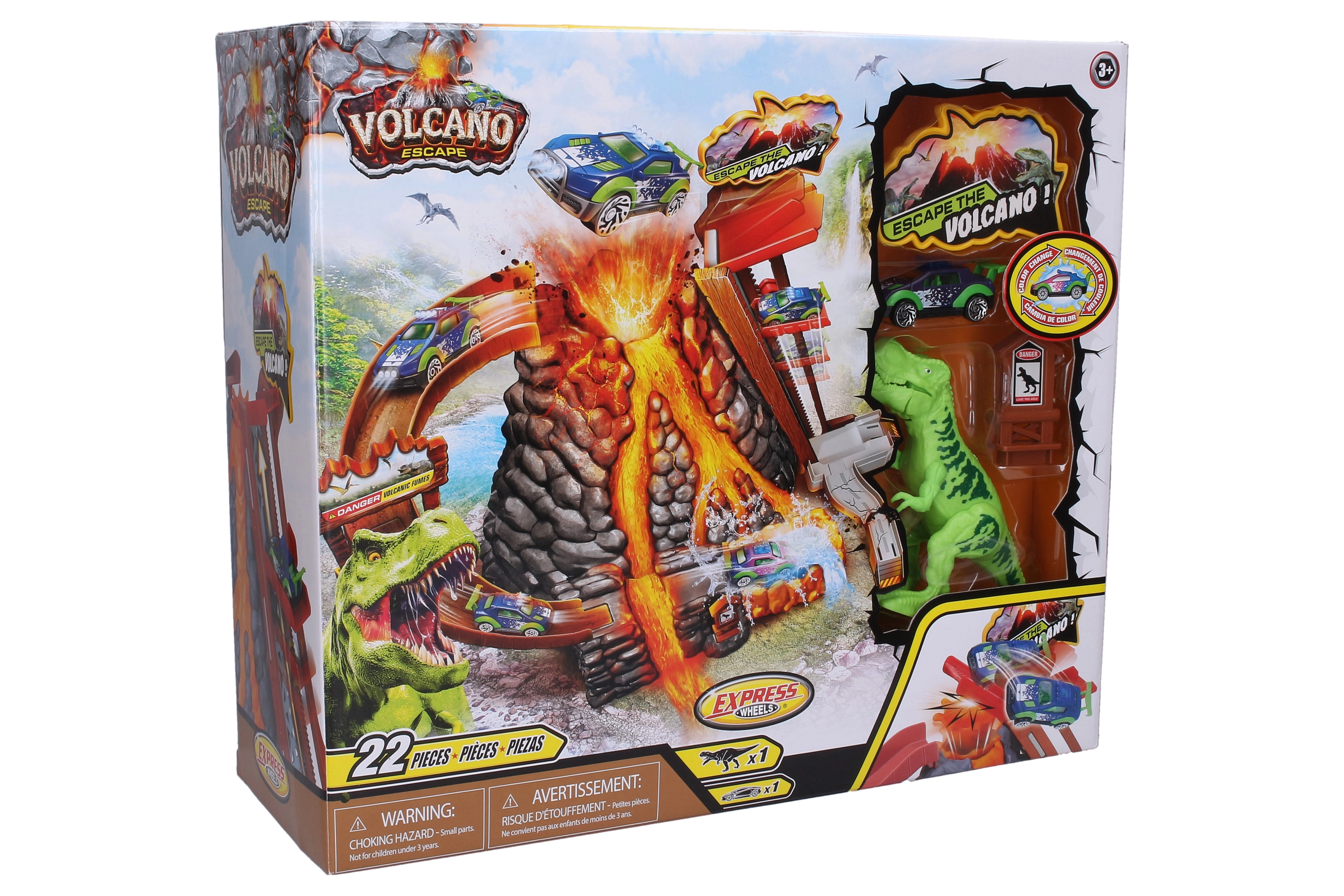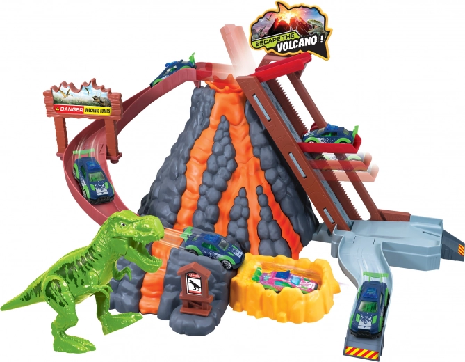 Ce circuit amusant avec volcan offre aux enfants un jeu dynamique plein de surprises. Faites monter la voiture par l’ascenseur jusqu’au sommet, lancez-la sur la descente et regardez-la échapper à la « lave » du volcan. Plongez-la ensuite dans le bain d’eau prévu et profitez d’un changement de couleur immédiat.