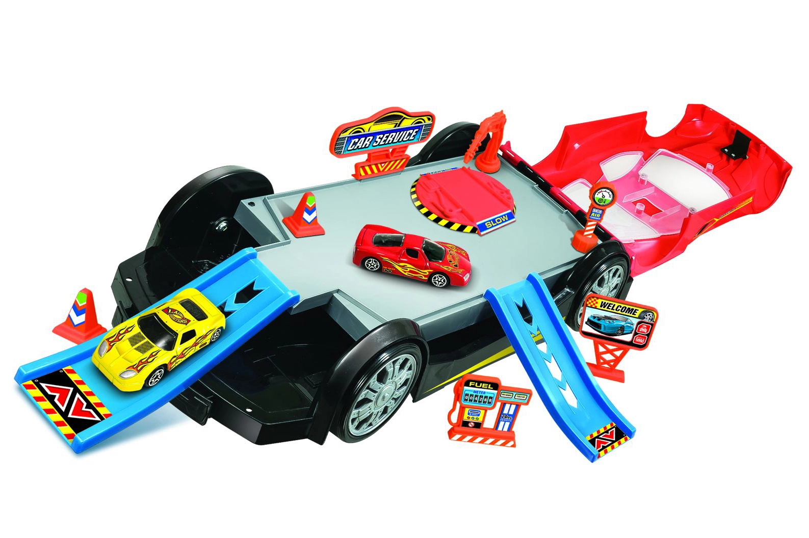 Découvrez l’univers créatif des mécaniciens avec cet atelier pliable qui se transforme, une fois ouvert, en station de service détaillée. Les enfants peuvent garer, réparer et partir sur la route avec les petites voitures fournies. Idéal pour jouer seul ou à plusieurs.