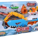 Partez pour une aventure en mer avec ce set détaillé pour petits capitaines. Le set offre un jeu amusant avec un bateau, des accessoires et le thème de la chasse aux requins. Il stimule l’imagination, le développement de la motricité et le jeu en groupe.