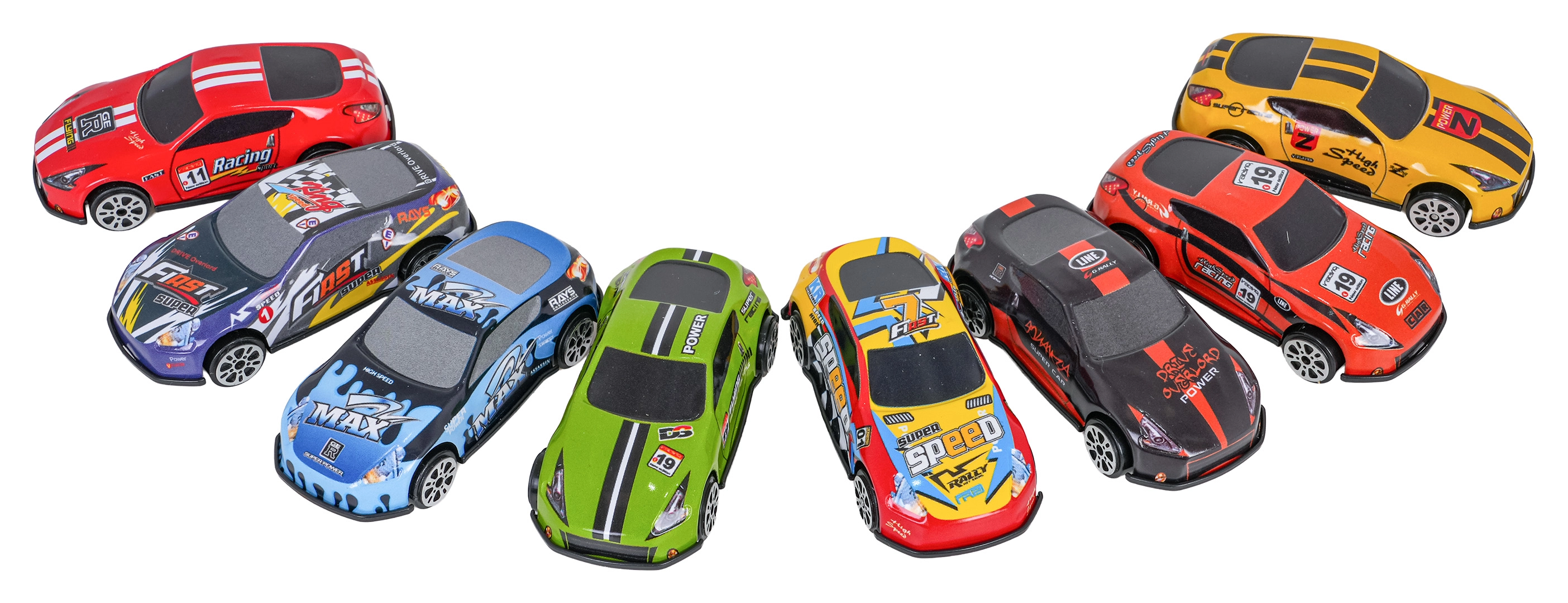 • 8 petites voitures avec carrosserie métal de différentes couleurs