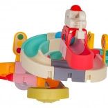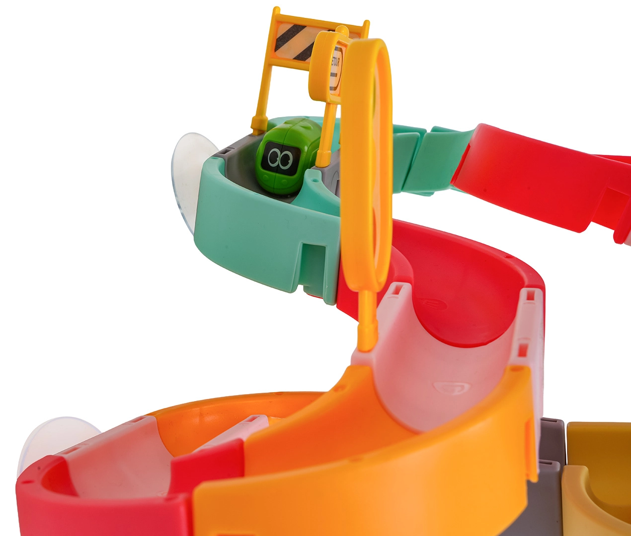 Construisez votre propre course aquatique directement dans la baignoire. Les pièces modulaires se connectent facilement et, grâce aux ventouses, peuvent être fixées sur les carreaux, la baignoire ou d’autres surfaces lisses. Il suffit de placer une mini-voiture sur la ligne de départ et de l’arroser avec la douche – l’eau la propulsera le long de la piste jusqu’à l’eau.