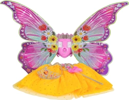 Ensemble de costume enchanteur pour enfants dès 3 ans, combinant des ailes de papillon colorées avec effets, un tutu jaune ultraléger, une couronne scintillante et une baguette magique. Grâce à sa finition soignée et à ses couleurs éclatantes, l’enfant se sentira exceptionnel à chaque bal, fête ou séance d’habillage au quotidien.