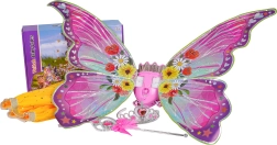- ailes de papillon avec lumière et son, jupe jaune, baguette magique, couronne