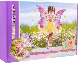 Les ailes de papillon proposent plusieurs modes : musique + battement + effets lumineux, battement + lumières, battement + clignotement des lumières, et battement seul. Des bretelles réglables assurent une fixation confortable, la structure légère et les LED multicolores créent une atmosphère féerique à chaque jeu.