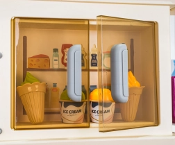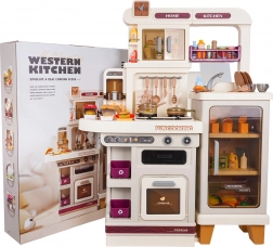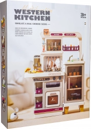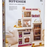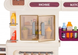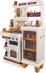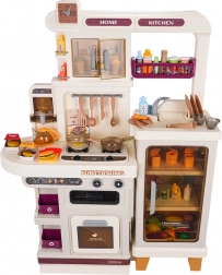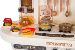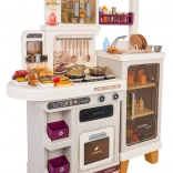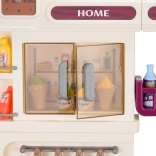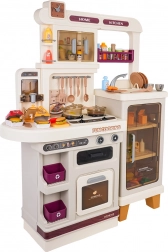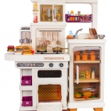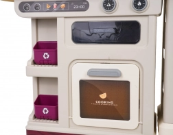 Cette cuisine multifonction élégante de couleur beige est fabriquée en plastique de qualité et ravira chaque enfant avec ses fonctions réalistes. Les brûleurs rétroéclairés produisent des sons de cuisson et de friture, une fine vapeur s’échappe de l’un des brûleurs et de l’eau coule du robinet fonctionnel. Le four et le réfrigérateur ouvrants, ainsi que les étagères et crochets, gardent tous les accessoires bien organisés à leur place.