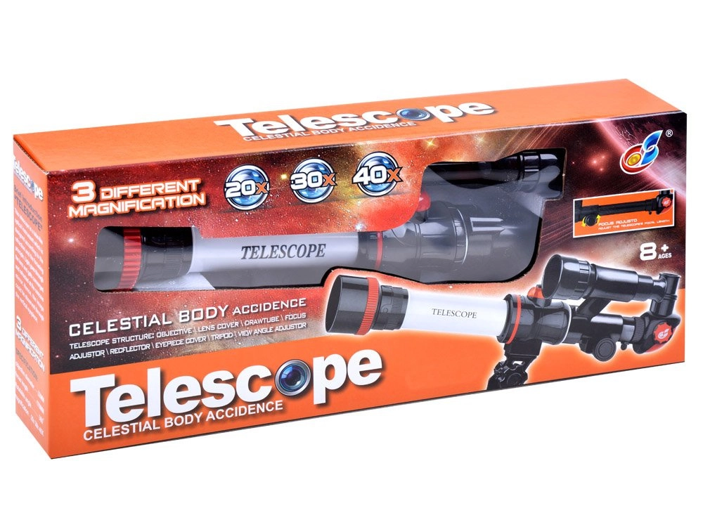 Découvrez le ciel nocturne avec un télescope pour enfants léger et facile à utiliser, monté sur trépied. Il offre des grossissements interchangeables de 20×, 30× et 40×, un contraste d’image élevé et un bon rendu des couleurs. Grâce au prisme diagonal, l’observation est confortable, le trépied compact assure la stabilité et le tube fermé protège l’optique de la poussière. Un excellent choix pour les premiers pas des petits astronomes comme pour l’observation terrestre.