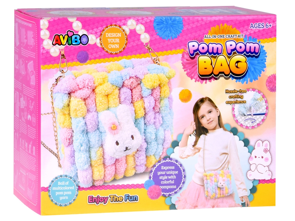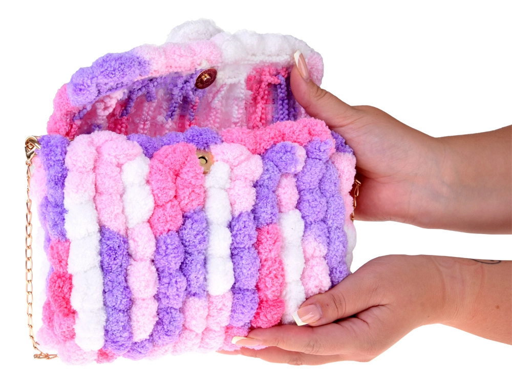 Le kit DIY Pom Pom Bag transforme le temps créatif en un projet amusant au résultat charmant – un petit sac moelleux et multicolore à la texture duveteuse, agréable au toucher. Le sac terminé peut se porter à l’épaule grâce à la chaîne métallique ou servir d’adorable accessoire pour les sorties et en ville.