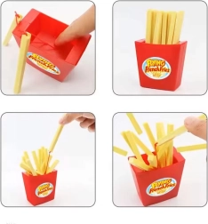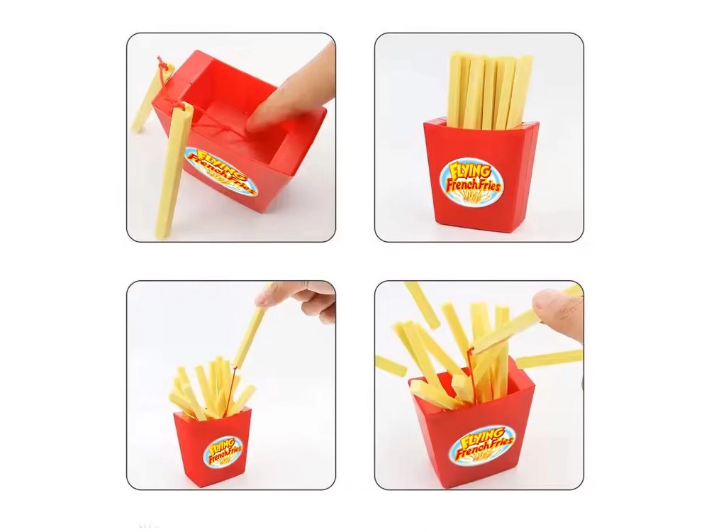 Compressez le mécanisme, remplissez le gobelet et retirez les frites une à une. Un seul faux mouvement déclenchera le tir et provoquera des salves de rires.