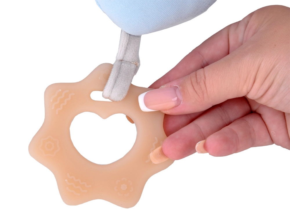 L’anneau texturé en forme d’étoile est facile à saisir et apporte un apaisement lors des poussées dentaires.