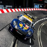 L’aimant et le guide précis maintiennent la Porsche 911 RSR fermement dans la voie, même dans les passages techniques du circuit.